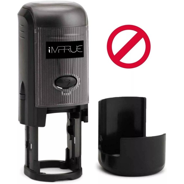 imprue Circle Slash Round Self-Inking Stock Rubber Stamp (3/4" Diameter) - Red Ink