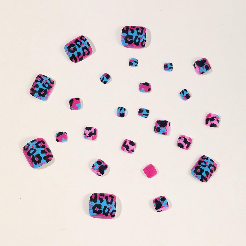 IMRAIN Leopard Print Press on Toe Nails Square Short Fake Toenails Matte Blue Pink Glue on Toe Nails Full Cover Summer Toe Nail Supplies 24Pcs Stick on False Toenails for Women 24Pcs