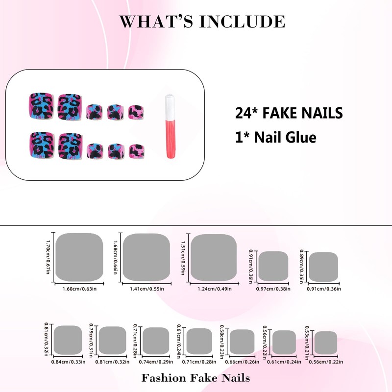 - [Quality Material] These blue pink coropard print press on toenails are made of quality acrylic material, gentle to your nails and skin, not easy to be scratched, will give you a nice manicure experience.
