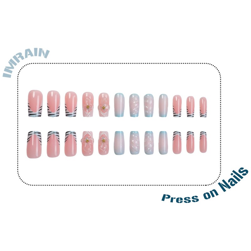 - [Package Content] You will get 24 pieces of IMRAIN medium square press on nails, a small clear box with glue, and you can trim it to any length you want~