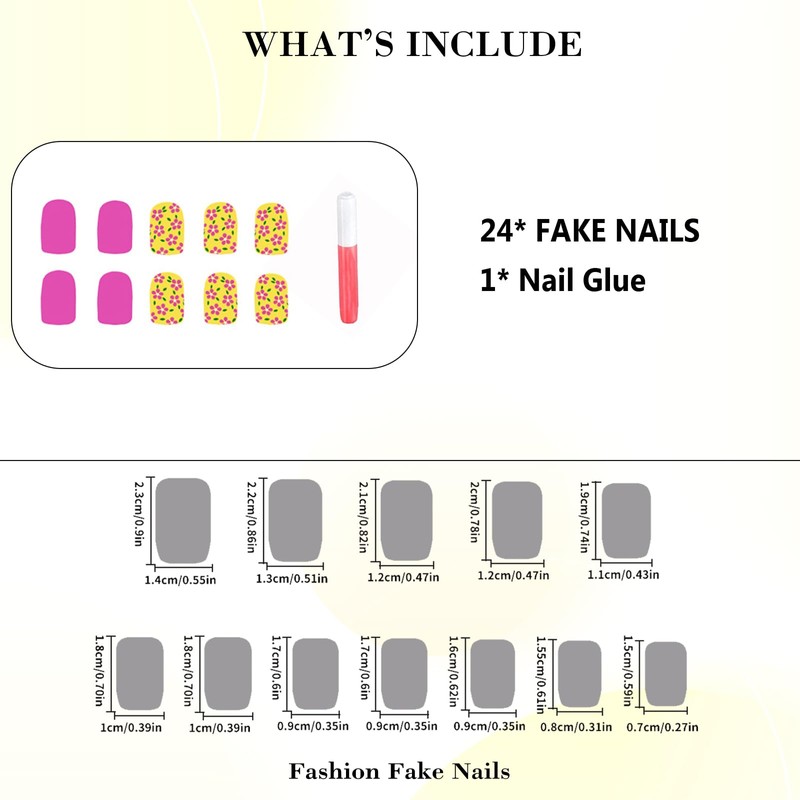 - [Quality Material] These yellow pink flower press on nails are made of quality acrylic material, gentle to your nails and skin, not easy to be scratched, will give you a nice manicure experience.
