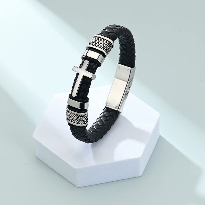 Imrsanl Cremation Jewelry Cuff Cross Urn Bracelet for Ashes for Women Men Keepsake Memorial Urn Braided Leather Bangle Bracelet for Ashes (Size-22cm)