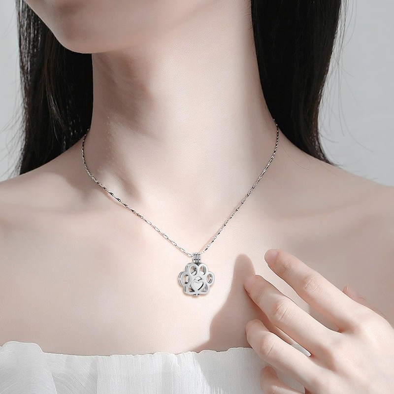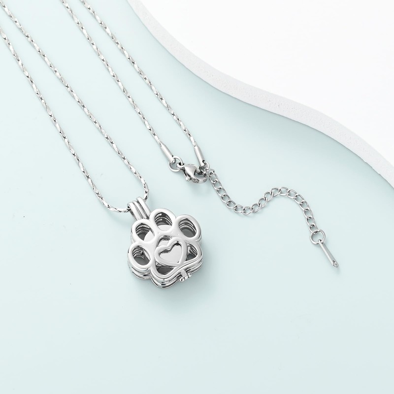 Imrsanl Pet Cremation Jewelry for Ashes Pendant Paw Print Pet Urn Necklace for Cat Dog Keepsake Memorial Ashes Jewelry (Silvery)