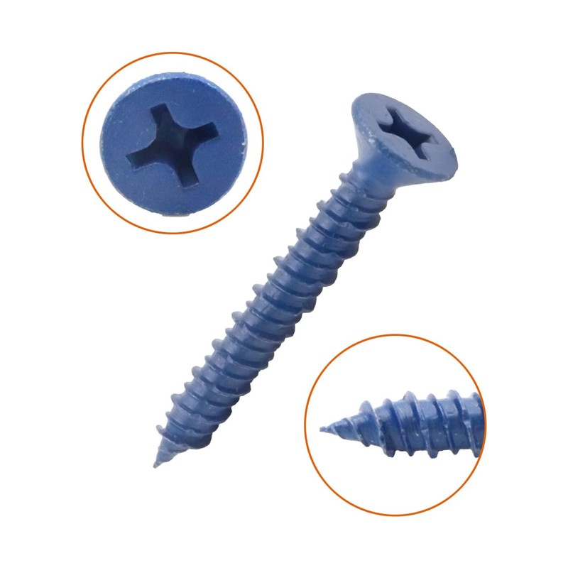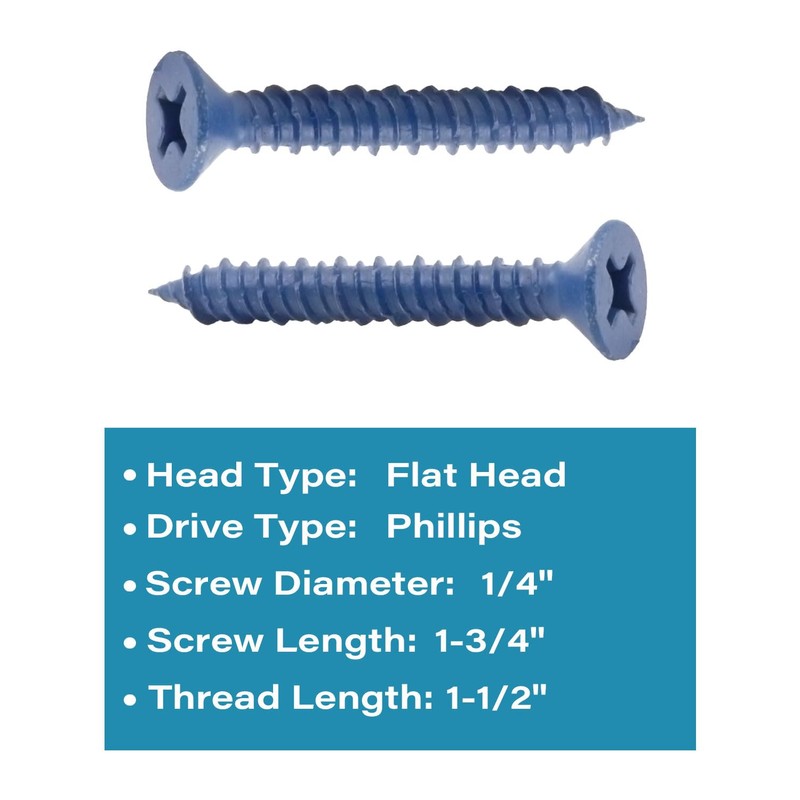 IMScrews 1/4" x 1-3/4" Blue Flat Head Concrete Screws for Anchoring in Concrete, High-Low Thread, Pack of 25