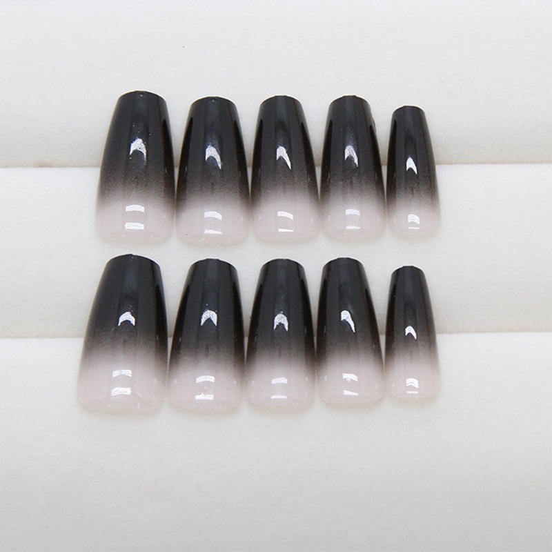 IMSOHOT Black Press on Nails Long Coffin Fake Nails Gradient Glossy Glue on Nails Full Cover Ballerina Acrylic False Nails Stick on Nails for Women Girls 24Pcs