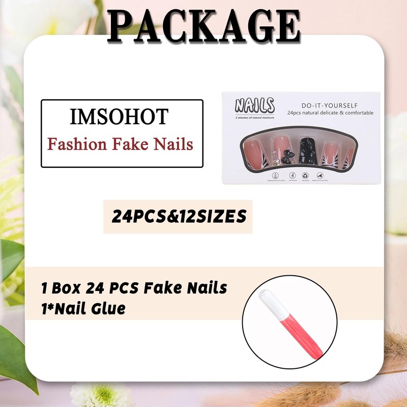 - [Package Content] You will get 24 pieces of IMSOHOT medium duck press on nails, a small clear box with glue, and you can trim it to any length you want~