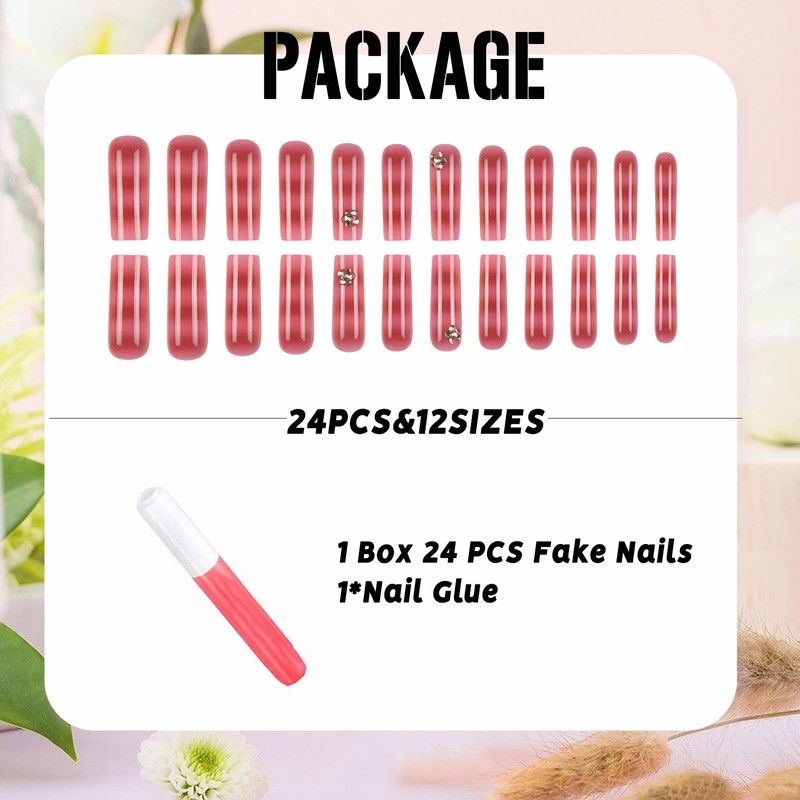 • [Package Content] You will get 24 pieces of IMSOHOT long square press on nails, a small clear box with glue, and you can trim it to any length you want~