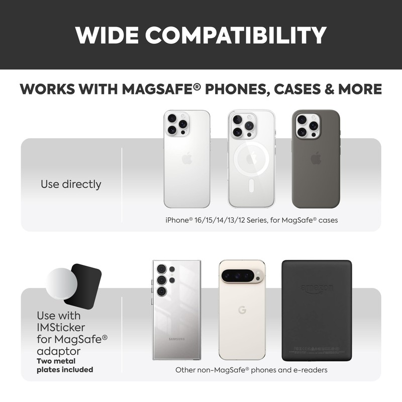 - Easy Installation, No Tools Needed: Attach the included metal plate to your phone case or place it underneath. Instantly convert your device into a magnetic phone grip setup. Note: Not recommended for use on bare phones.