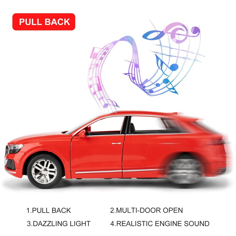 imtfzct 1:24 Q8 Model vehicles, Die-cast Alloy Car with Pullback Function, Children's Toy Car with Light and Sound, Collectible Model Toy, Present for 4-7 Year Old Children (red)