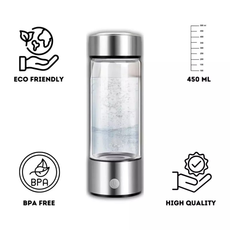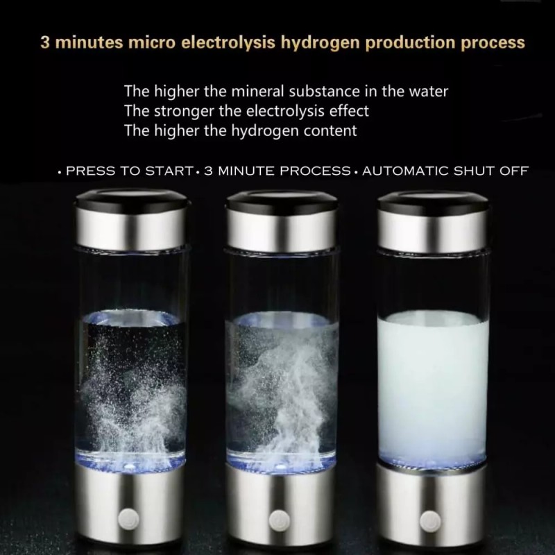 What Is Hydrogen Water? According To Some Studies, Adding Hydrogen To Water Increases Its Anti-Inflammatory And Antioxidant Properties. This Means It Helps Increase The Ability To Increase Energy, Slow Down The Ageing Process And Improve Muscle Recovery After A Workout. However, Hydrogen Water Bottles Or Tablets Can Become Very Expensive To Consume On A Regular Basis, So This Hydrogen Water Bottle Generator Is A Cost Effective Way To Consume Hydrogen Water Regularly At Home. Hydrogen-Rich Water For Healthy Life The Hydrogen-Rich Water Cup Adopts New Spe And Pem Technology To Rapidly Electrolyze Water, Separating And Releasing H2 And O2. Molecular Hydrogen Is A New Type Of Antioxidant That Effectively Reduces Oxidative Stress.Technology. Spe Ion Membrane Electrolyte Water Into Hydrogen-Rich Water, Effectively Separating Residual Chlorine And Odorous Hydrogen. 8 Cups Of Hydrogen-Rich Water A Day, A Healthy Life Starts With Drinking Water. Benefits Of Hydrogen Water It Is Used To Produce Hydrogen-Rich Water For Health And Beauty. Hydrogen-Rich Water Can Effectively Remove Toxic Free Radicals, Prevent Cell Oxidation, Prevent Diseases, Improve Human Metabolism, Delay Senility And Improve Skin Quality. Why You Need If You'Re All About The Healthy Lifestyle, You Surely Understand The Importance Of Proper Hydration For Your Body. However, Regular Plain Water Cannot Ensure A Sufficient Hydrogen Absorption. This Hydrogen Water Bottle Generator Infuses Additional Hydrogen Molecules Into Your Drinking Water, For Spectacular Effects.