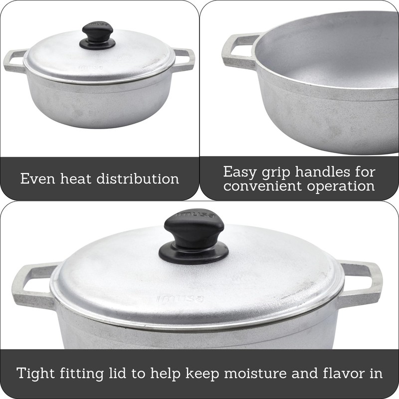 IMUSA 2.6 Quart Traditional Natural Made in Colombia Caldero with Lid for Cooking and Serving, Silver