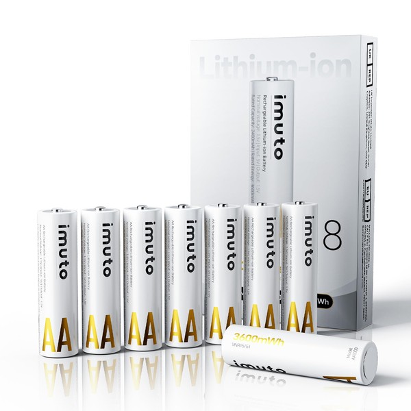 imuto Rechargeable aa Batteries, 3600mWh aa Lithium Batteries 8 Pack, 1.5V 2A Output Double a Battery, 1600+ Cycle Life
