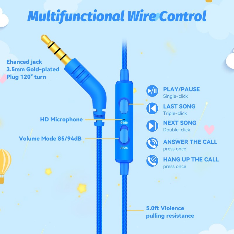 IMYB Kids Headphones with Cord for School (Blue)