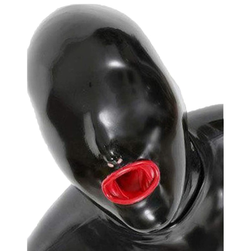 IMZAUYH Latex Mask Black Red JJ Set Hood 0.4mm Close Sealed Unseen Breathable Nostrils Head Cover Cosplay ZZ16 (Black, XXL)