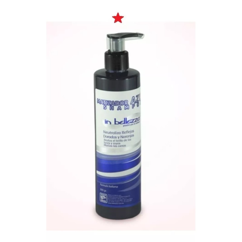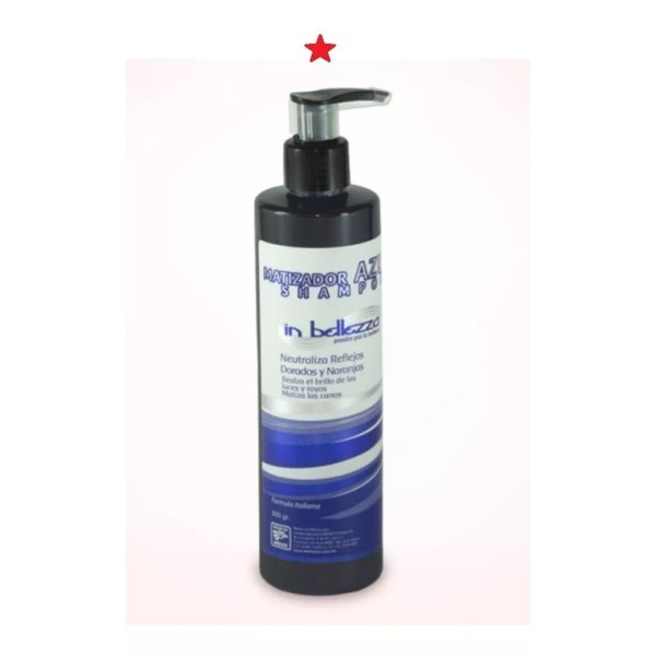 Shampoo matizador azul, que neutraliza el cabello naranja o amarillo causado por la decoloración, además matiza las canas y realza las luces y los rayos del cabello.