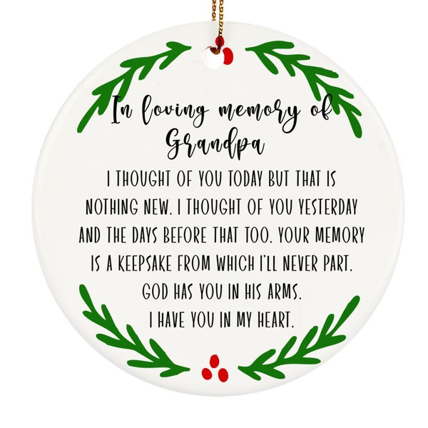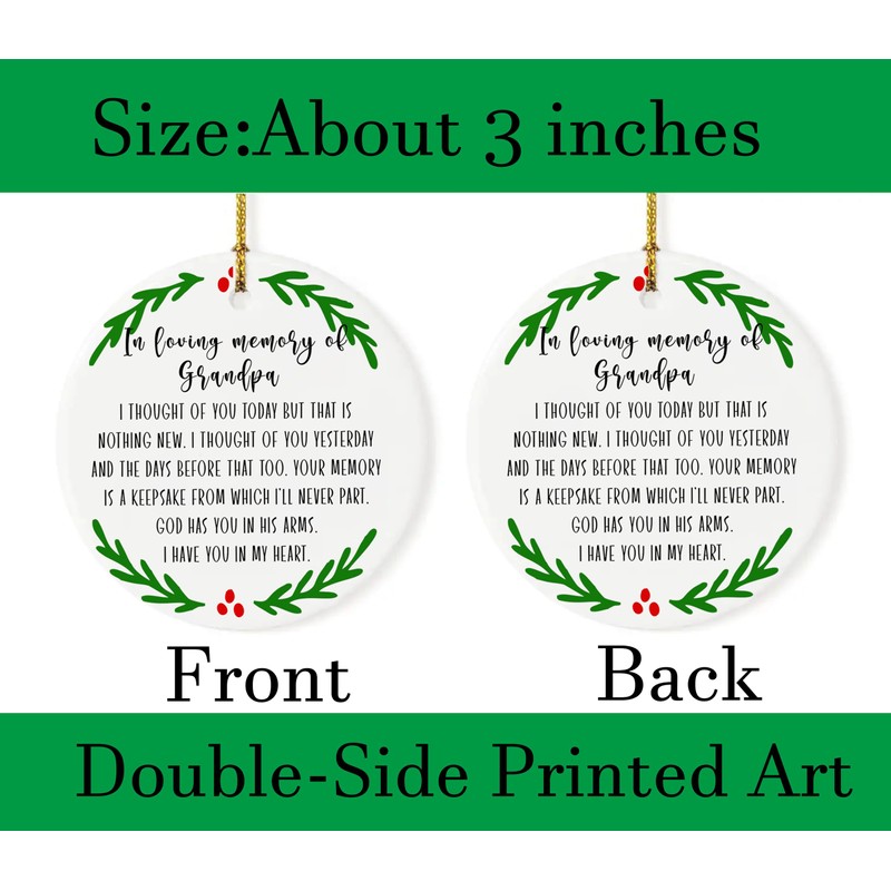 in Loving Memory of Grandpa Ornament, Double-Sided Printed 3" Ceramics Christmas Ornament, Grandpa Memorial Sympathy Keepsake Gift for Loss of Grandfather, Papa