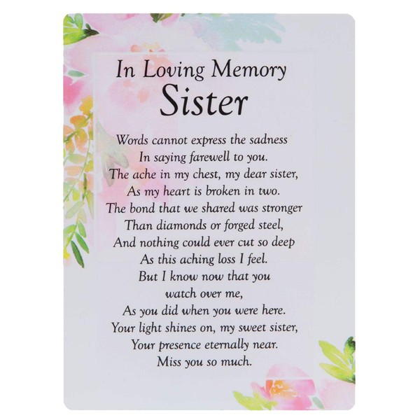 - In Loving Memory Sister Words cannot express the sadness in saying farewell to you. The ache in my chest, my dear sister, as my heart is broken in two. The bond that we shared was stronger than diamonds or forged steel, And nothing could ever cut so deep as this aching loss I feel. But I know now that you watch over me, as you did when you were here. Your light shines on, my sweet sister, your presence eternally near. Miss you so much.