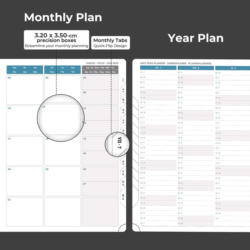 - Monthly Pocket Planner: Covers July.2025-Dec.2026. It adopts a double-page design for one week, so you can get a general overview without turning pages. The week to view diary page provides writing space for arrangement of daily tasks, priority management and activity records; the left side of the monthly plan marks important dates, and the right side plans special tasks