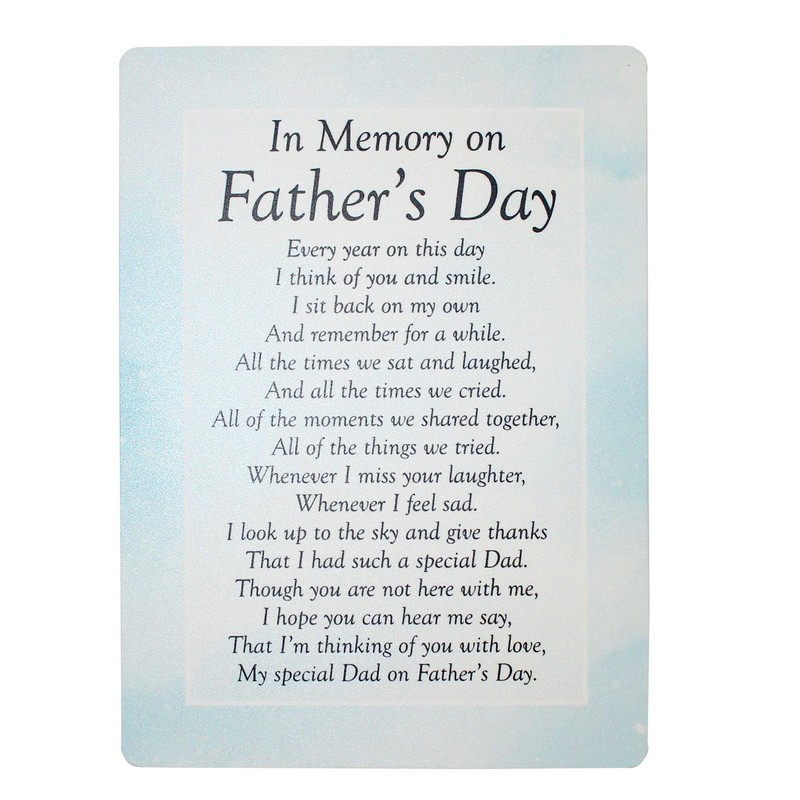• The Card Reads: In Memory on Father’s Day Every year on this day I think of you and smile. I sit back on my own and remember for a while. All the times we sat and laughed, and all the times we cried. All of the moments we shared together, all of the things we tried. Whenever I miss your laughter, whenever I feel sad. I look up to the sky and give thanks that I had such a special Dad. Though you are not here with me, I hope you can hear me say, That I’m thinking of you with love, my special Dad on Father’s Day