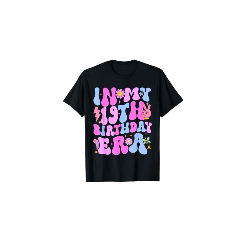 - In My 19th Birthday Era Nineteen B-day version color pink Groovy retro design Outfit for women 19 years old Nineteen Birthday Party. Makes the perfect 19th bday gift idea for women. Nineteen Years Old women Birthday gifts age 19 apparel.
