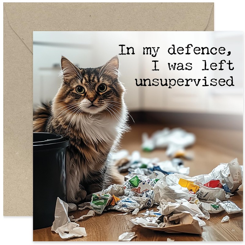 In My Defence' Cat Funny Card - Hilarious Birthday Cards for Men and Women - Humorous Greeting Cards for Family and Friends - For Men and Women - Any Occassion