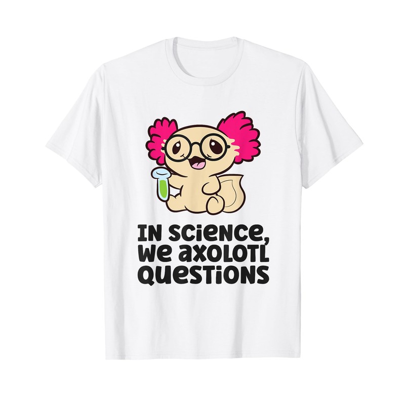 - In Science We Axolotl Questions. Funny axolotl outfit for boys and girls that are axolotl lovers. Funny Axolotl Questions In Science Apparel that is perfect for anyone who goes to school and asks a lot of questions in science.