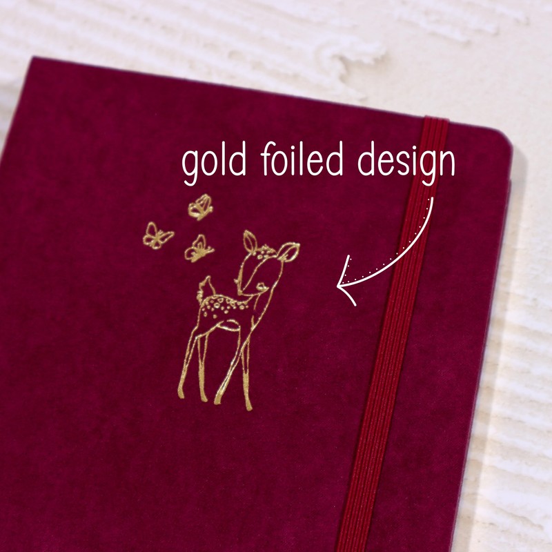 In The Slightest - Dotted Notebook - Doting Deer - Butterflys - Velvet Cover - No Bleed Through Paper - 192 Pages - Thick Paper - Gold Foiled Edging