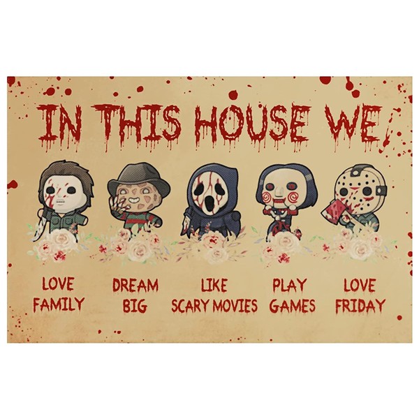 In This House We Love Family Dream Metal Tin Sign Movie Lovers Funny Retro Wall Art Sign Best Friend Gift 8x12 Inch