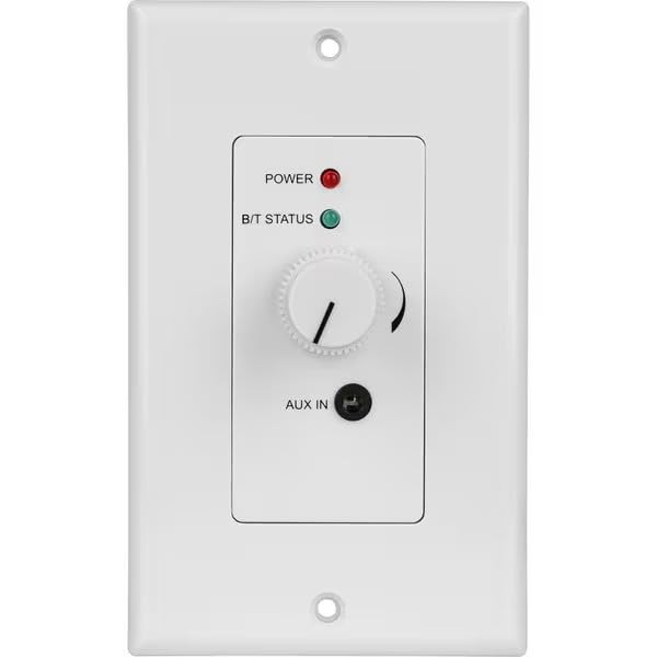 In-Wall Stereo Audio and Bluetooth Receiver Wall Plate with Volume Control