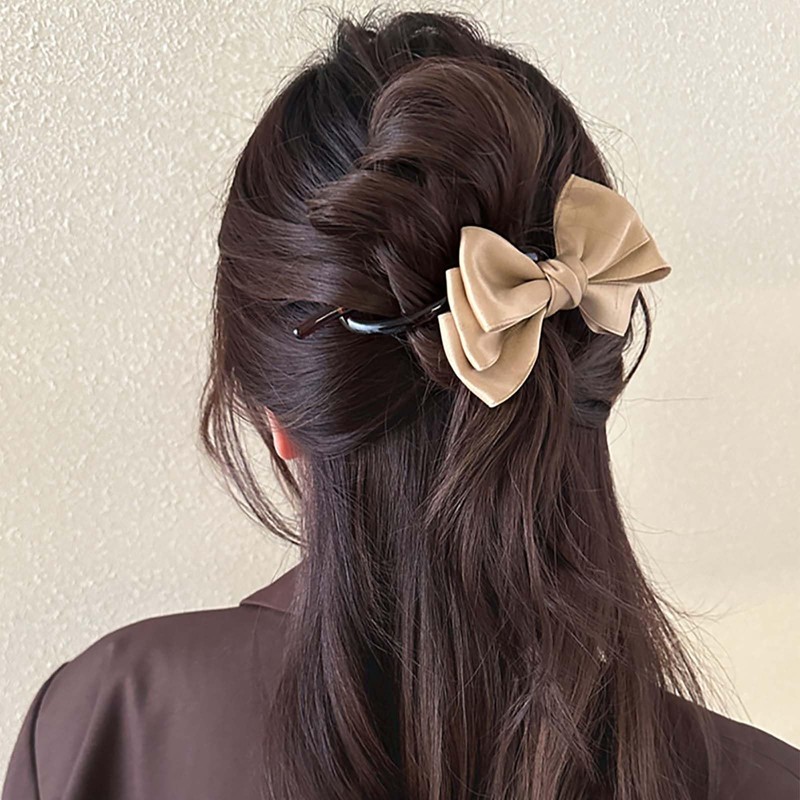 Inateannal Silky Satin Bow Hair Clip khaki Silk Ribbon Bow Clips French Twist Banana Clip Barrettes Silk Bowknot Hairclips Banana Hair Claw Clip Twist Hair Styling Clip Barrettes