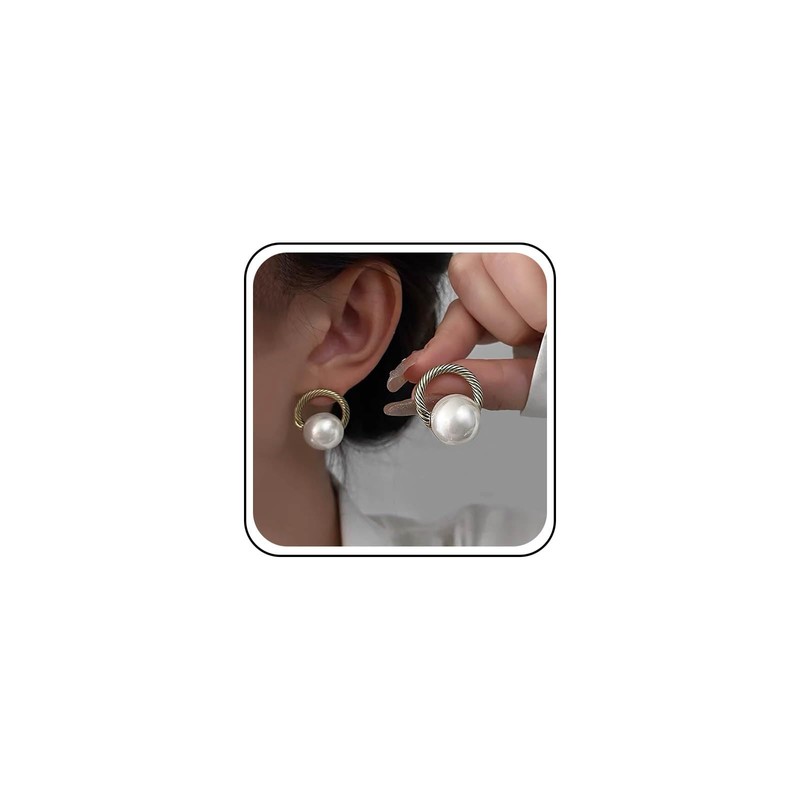 Inateannal Vintage Circle Pearl Earrings Gold Twisted Hoop Earrings Circle Pearl Dangle Earrings Boho Large Round Pearl Earrings Open Twisted Circle Earrings
