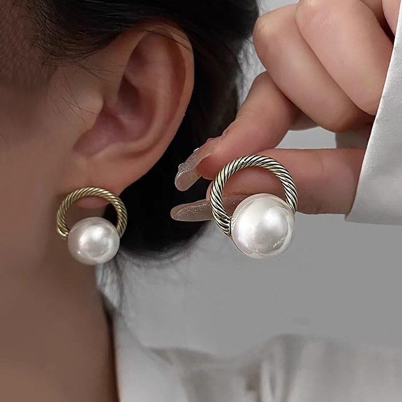 - Circle pearl hoop earrings.item details:handmade item.size:as shown.color:gold.materials:quality alloy.location:ear.style:boho/vintage
