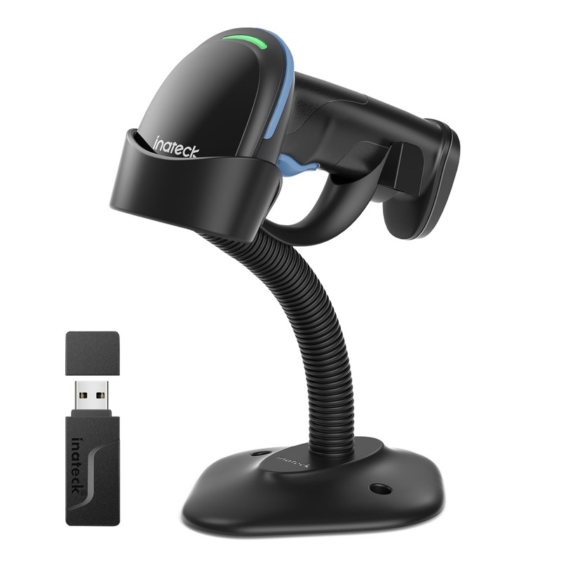 Inateck 2D Barcode Scanner mit Intelligentem Ständer, Kabellos QR Code Scanner, Handscanner mit APP und SDK, 2D Imager mit 2600mAh Akku, BCST-35, Blau