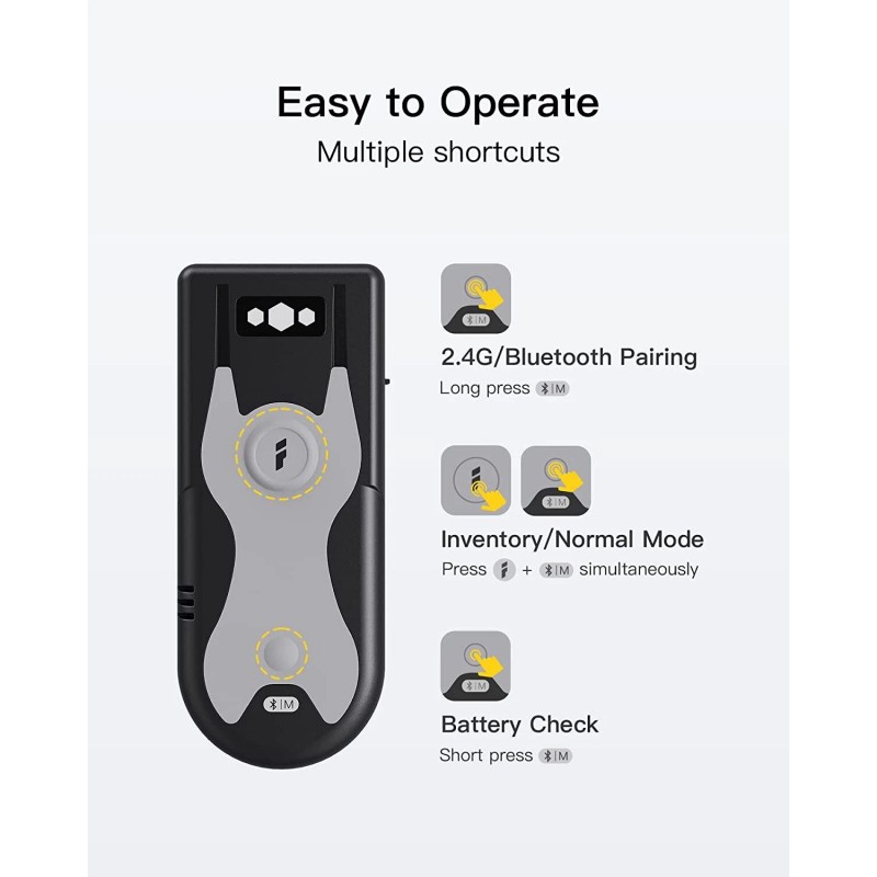 - Unlike most scanners, this scanner allows you to press the shortcut buttons to set the frequently used functions such as pairing via Bluetooth/2.4G, entering/exiting inventory mode and checking battery level.