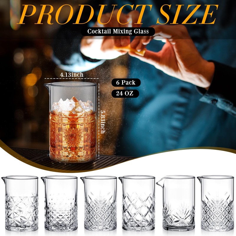 - Set of 6 Cocktail Mixing Glasses: this package includes 6 cocktail mixing glasses in 6 styles, about 24 oz, an ideal addition for your home bar and entertaining guests; Whether you're mixing up a traditional cocktail or making your unique concoctions, these glasses are suitable; Please confirm the size before placing an order