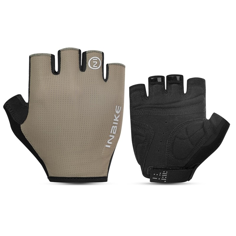 INBIKE Cycling Gloves Men's Half Finger Summer MTB Hand Shoes Bicycle Cycling Breathable Reflective Cycling Gloves Black Khaki M