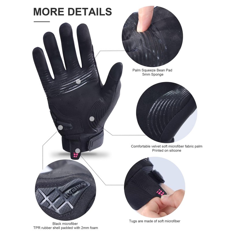 - Anti-Slip & Durable Grip - The women's dirt bike gloves feature silicone-printed palm with ultra-soft microfiber to firm handlebar grip, and 5mm padded palm to absorb vibrations and enhance comfort on rough roads.