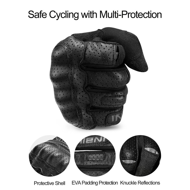 INBIKE Motorcycle Gloves Leather Motorbike Glove Mens Motocross Protective Full Finger Touch Screen Riding Black Men Womens M