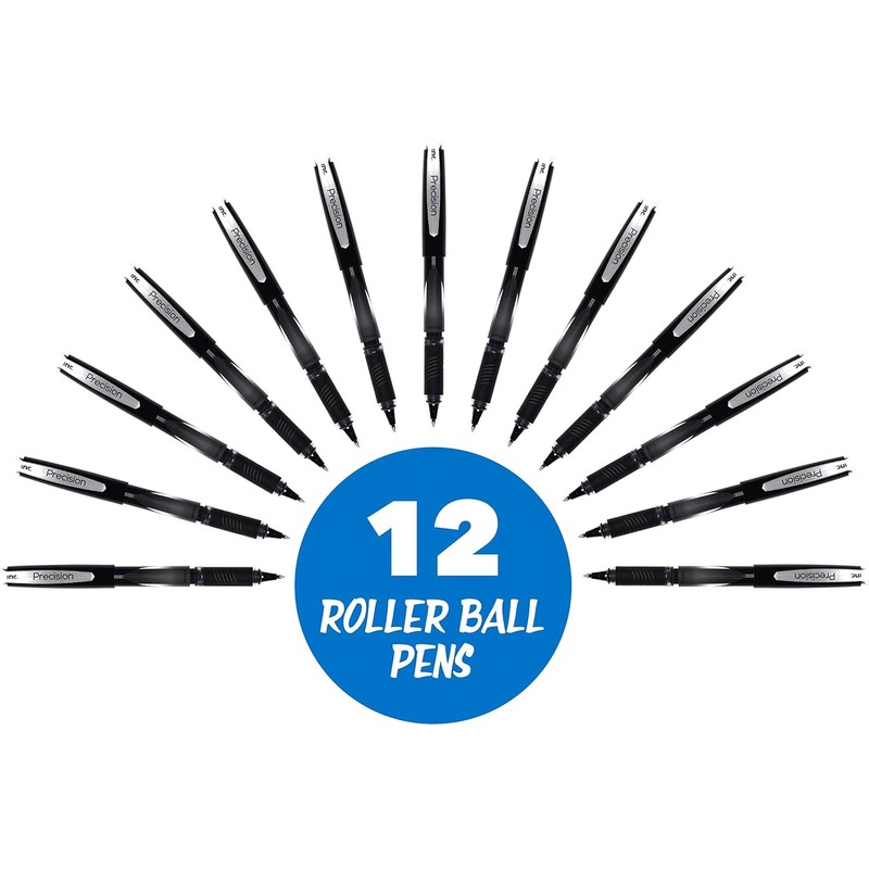 Inc. R2 Precision Rollerball Pens - 0.5 mm Ultra Fine-Point Pen Set With Comfort Grip for School, Office, Writing, and Journaling, 12 Pack, Black Ink