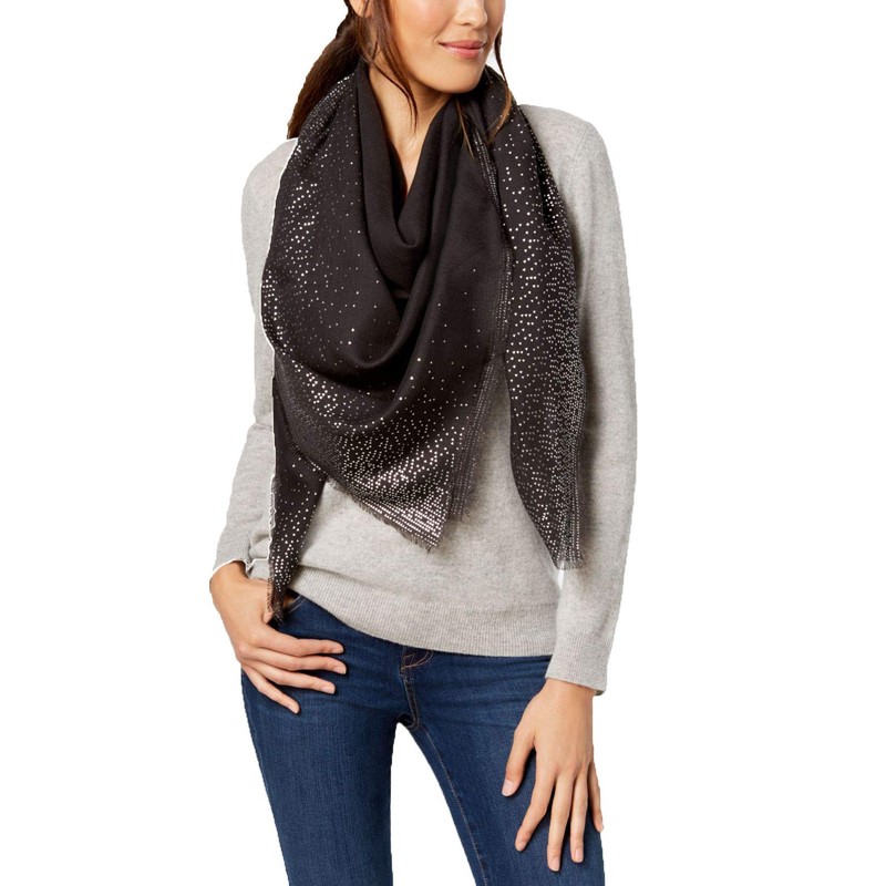 Inc International Concepts Ombre Metallic Foil Oversized Square Scarf (Black, One Size)