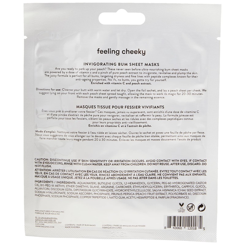 - Invigorating bum sheet masks enriched with Vitamin C and peach extract