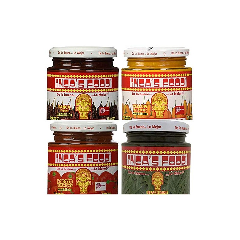 Inca's Food Mixed Sampler - Aji Amarillo, Aji Panca, Huacatay, and Aji Rocoto - (4) 7.5 Oz Jars