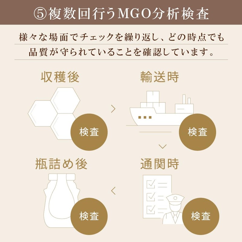 In 1995 before the Manuka Honey Boom, the leader of Japanese beekeeper craftsmen "Tsuji" and is a natural and mature manuka raw honey produced in limited manuka beekeepers under the guidance of this guidance, and is not a mass produced product made from blended with other honey honey. Among the ultra-active Incanum Manuka forests native to New Zealand northern Islands, we pursue the amount of natural antibacterial active MGO that only honey.