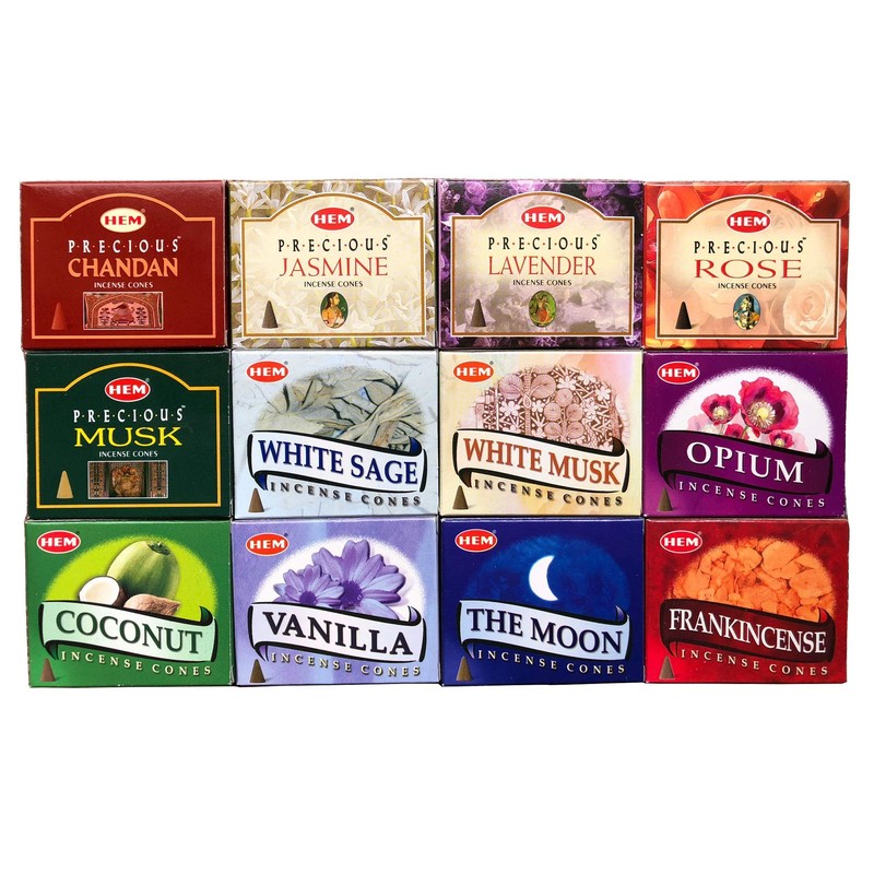 Incense Cones, Set of 12 Assorted Packs of 12 Assorted Pack, India HEM Aroma
