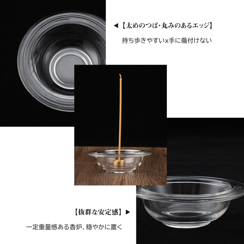 - [Purity and Wide Size] The transparent glass incense burner has a Nordic style and a nice and streamlined form that goes well with your altar, but is also stylish as an interior decoration. Wide size with a diameter of about 3.9 inches (10 cm), it is hard to overflow