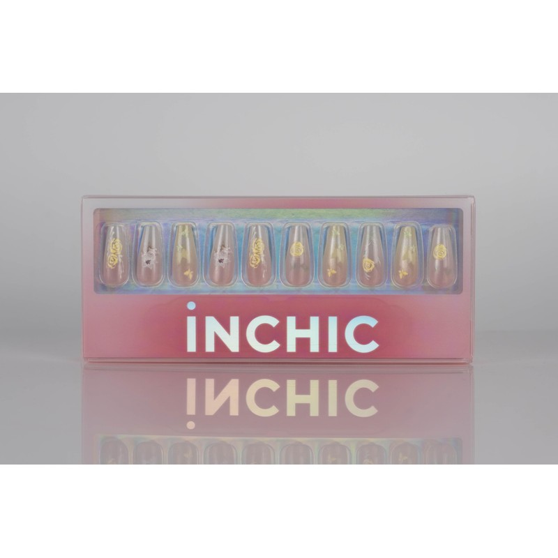 INCHIC Yellow Rose, Long Coffin, Light Pink Ombre with Yellow Rose, 30 Pcs Press on Nail