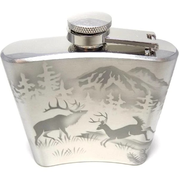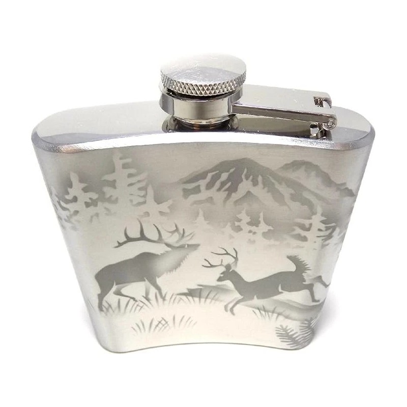 IncisoArt Hand Etched Stainless Steel Flask Sandblasted Forest Animal Combo 6oz