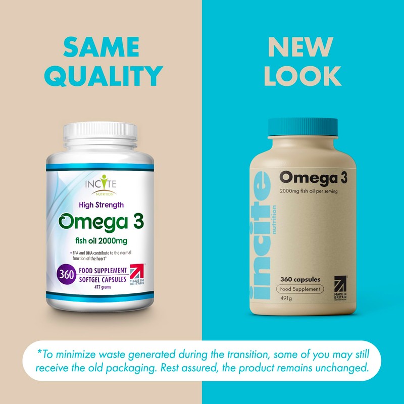 Incite Nutrition Omega 3 Fish Oil - 360 Soft Gels (6 Months Supply) - 2000mg | High Levels of EPA & DHA | Premium Easy Swallow Omega3 Fish Oils Gel Capsules Made in Britain by Incite Nutrition