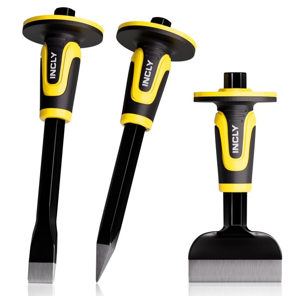 - 【3PCS Chisel Set Package Included】: INCLY masonry chisel set contains 1x 11 inch/30cm Point Chisel, 1x 11inch/30cm Flat Chisel, 1x 8 inch/21.5cm Brick Chisel.