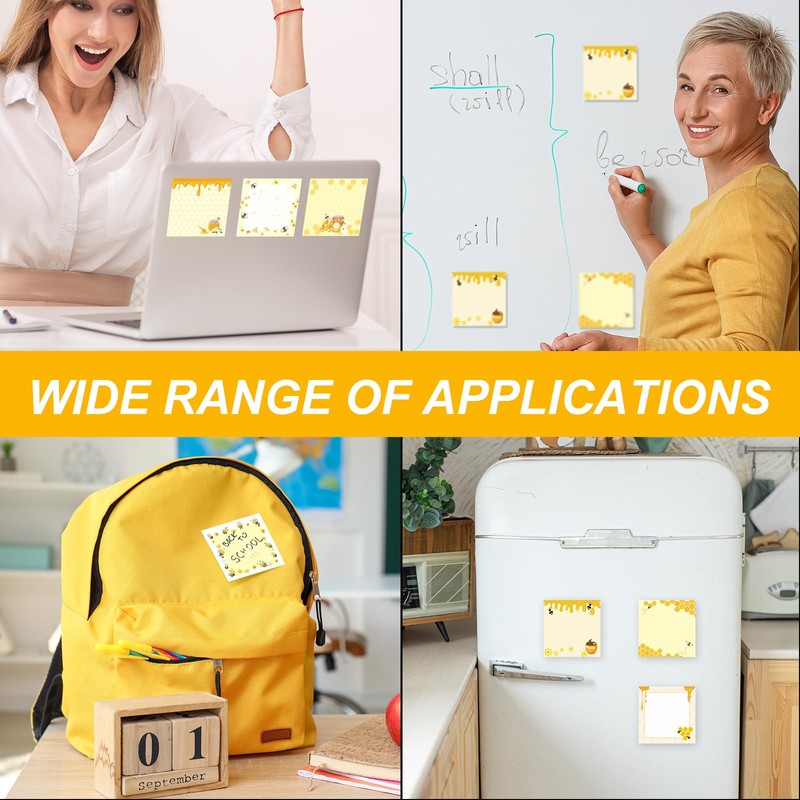 - High Quality: These bee note sticker are made of strong sticky paper, odorless, easy to peel and smear, perfect for leaving notes or reminders on walls, chalkboards, desktops, refrigerators, books, notebooks and other flat surfaces, can be removed without leaving sticky marks